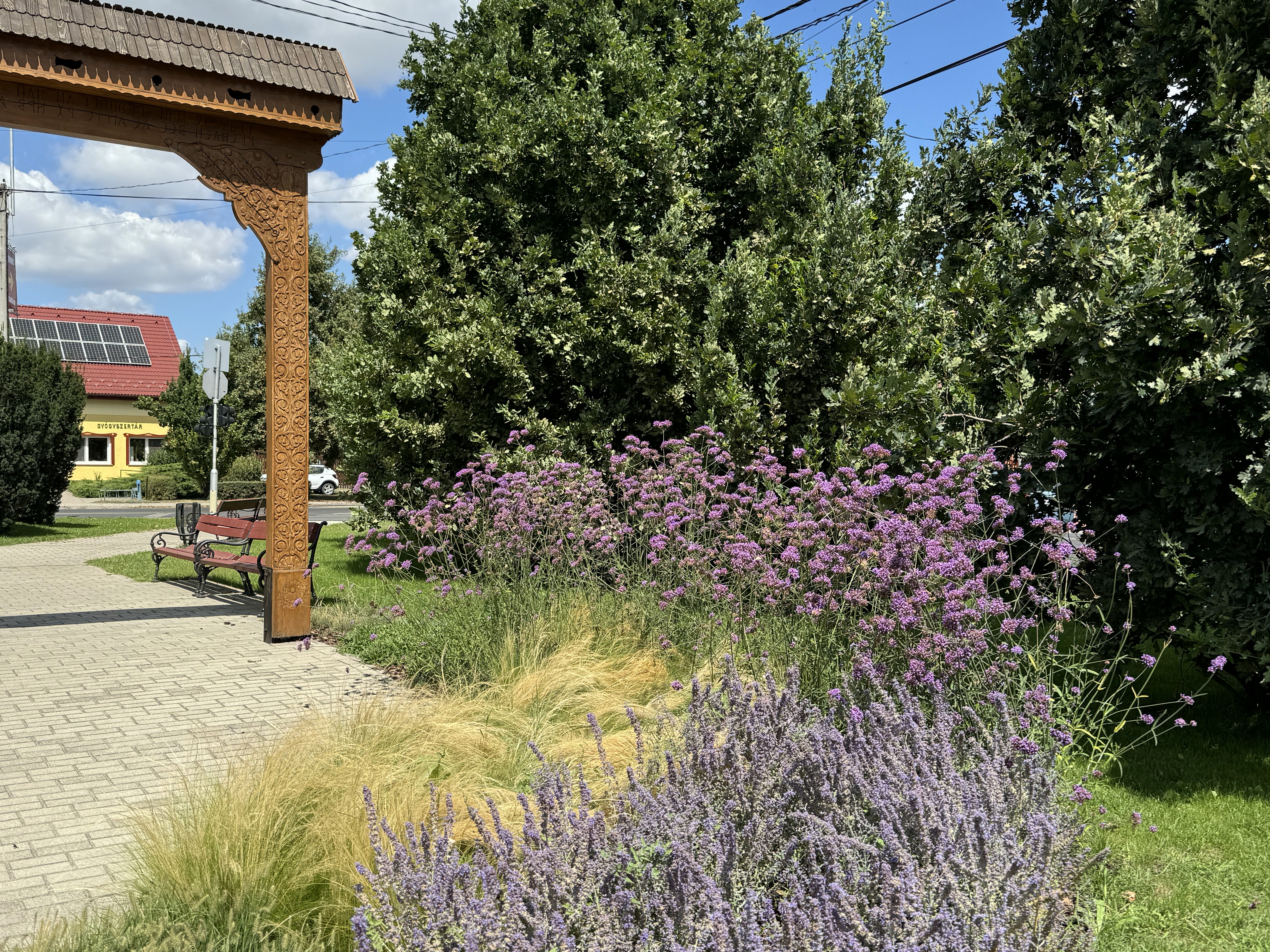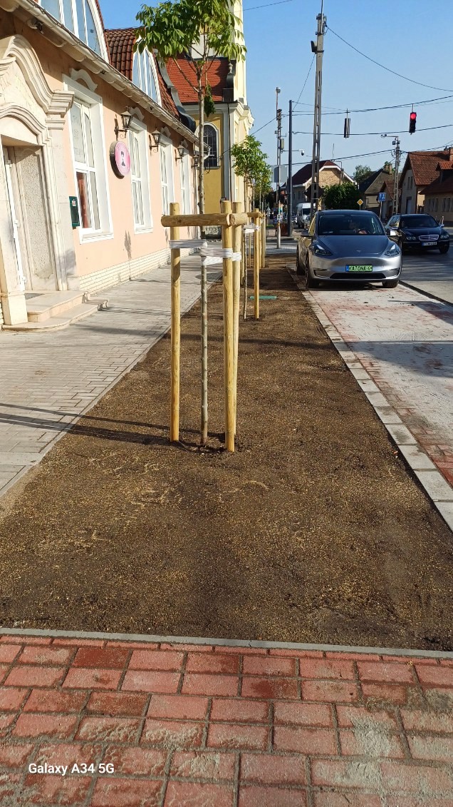 Alsónémediben számos felújítási munkában vettünk részt, ennek egy állomása volt a Dózsa György tér. A téren található emlékmű, illetve a székelykapu, egy ikonikus pontja a településnek, így ezt kiegészítve alkottuk meg koncepciónkat. A burkolatot pompásan virágzó vegyes évelő ágyásokkal szegélyeztük, valamint a gyepfelület is felújításra került. A kialakítás mind helyet biztosít ott tartózkodásra, a padok elhelyezésével, illetve a burkolat vonalvezetése a funkcionális áthaladást is biztosítja.